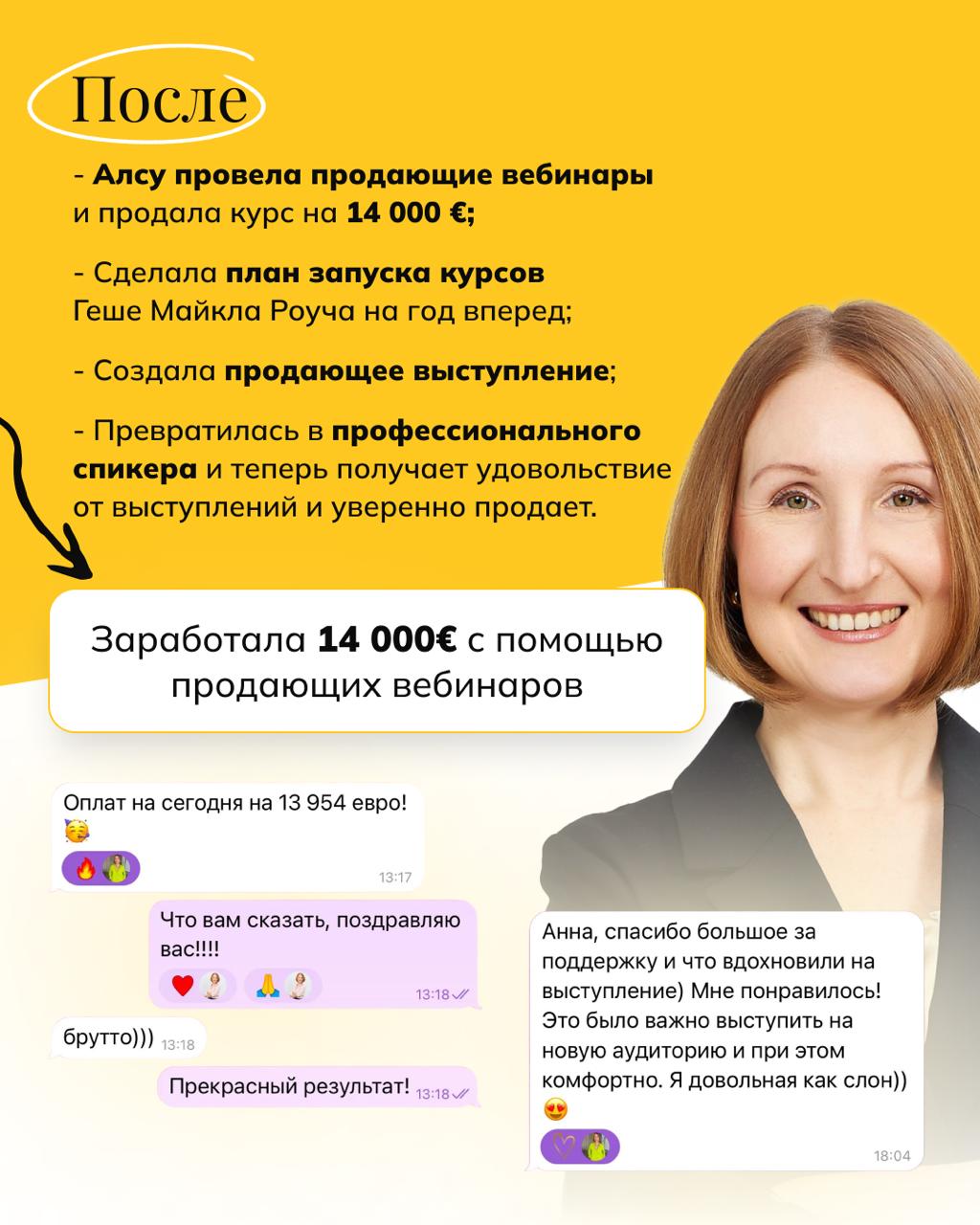 • Индивидуальная подготовка к продающему выступлению, записи курса и выходу на большую сцену